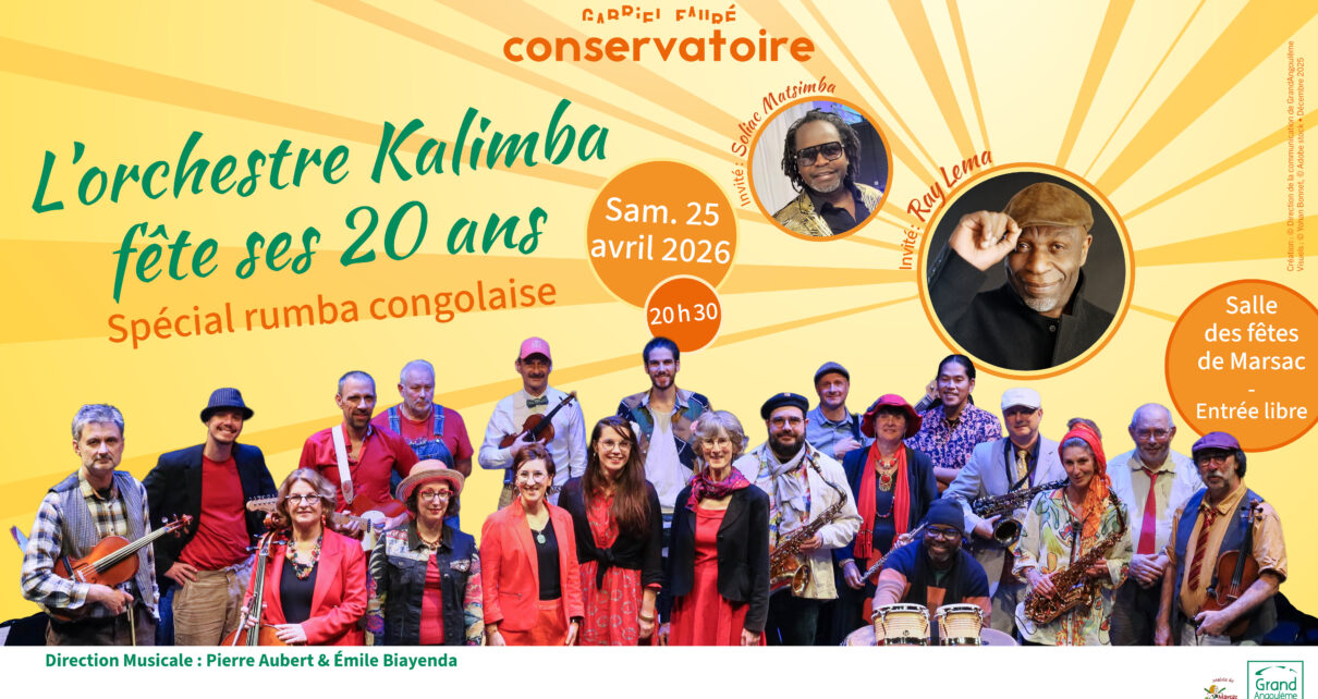 Venez vibrer au rythme de la rumba congolaise pour célébrer comme il se doit les 20 ans de l’orchestre afro-jazz Kalimba du conservatoire de GrandAngoulême. Une soirée festive, chaleureuse et […] Lire la suite »